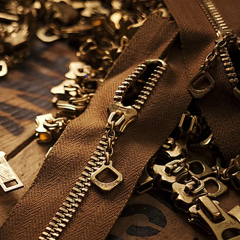 フロントにはYKK社製金属ファスナー「OLD AMERICAN」5番を使用し、「UNIVERSAL」刻印スライダーを黒塗装し、着用するほどに使用感を演出していく。
