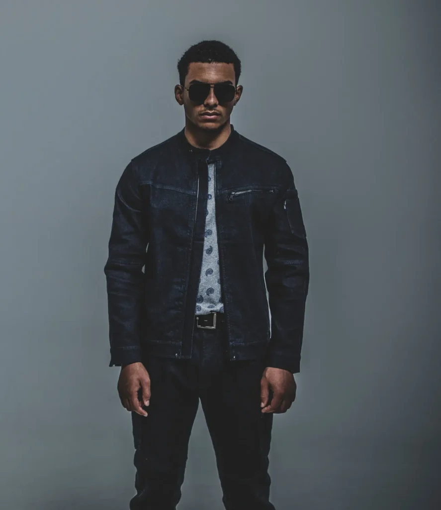 スリムシルエットとシャープなデザインに、太番手ファスナーを主役にしたカジュアルワークスタイル。