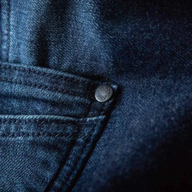 フロントにはYKK社製金属ファスナー「OLD AMERICAN」5番を採用し、「UNIVERSAL」刻印スライダーを黒塗装することで、着込むほどにデニムとともに味わい深い表情へと変化。