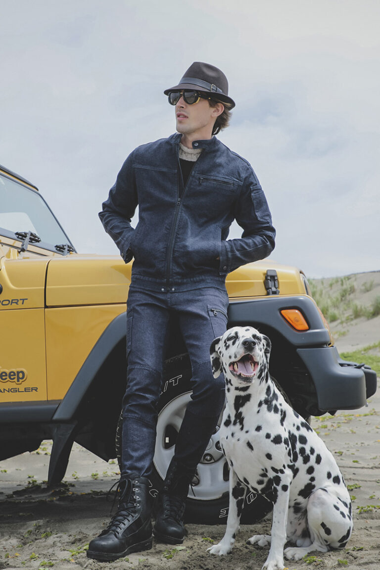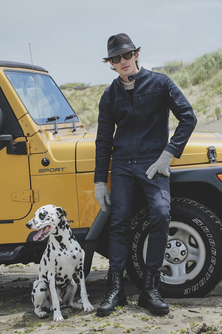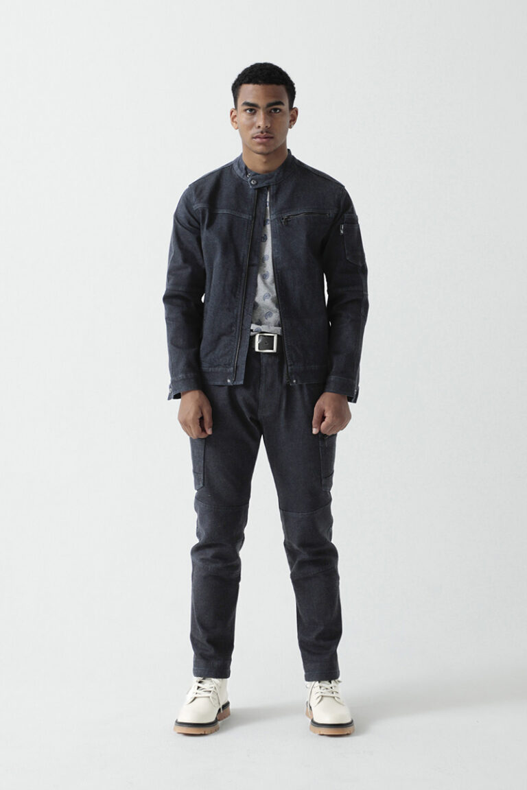 綿100%の本格的なデニムの風合いを持ちながら、着用時の快適性をそのままに高い耐久性を実現。I・デニムでは、初めから経年変化が楽しめる加工とし、M・ブルーでは色落ち加工のない深い藍色とすることで、自分自身で経年変化を楽しむことができる。