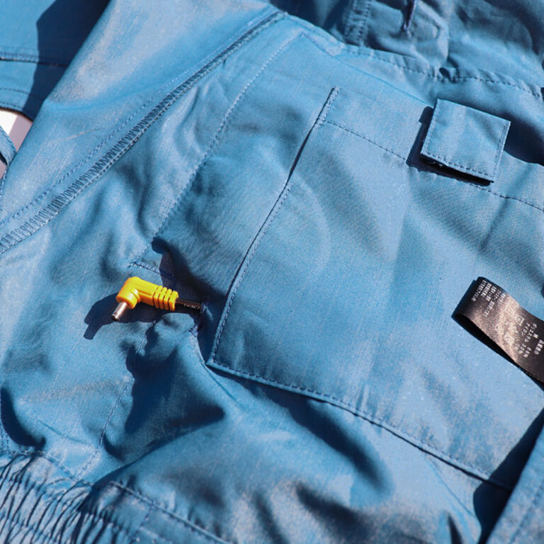 生地からの空気漏れを防ぎ、衣服内に風が巡りやすい高密度織りで、ブランドの揺るぎない統一感をしっかりと備え、全体の世界観が崩れることのない細身シルエットデザイン。