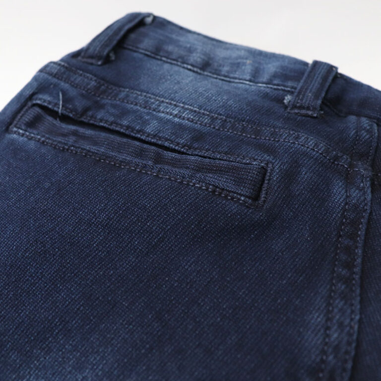 ニットデニムのような伸縮性を持った生地で作られたパンツ。ドビー織りを採用することにより、光沢感と独特の風合いをもつスタイルと、肌触りが柔らかく快適な着心地を生み出しました。