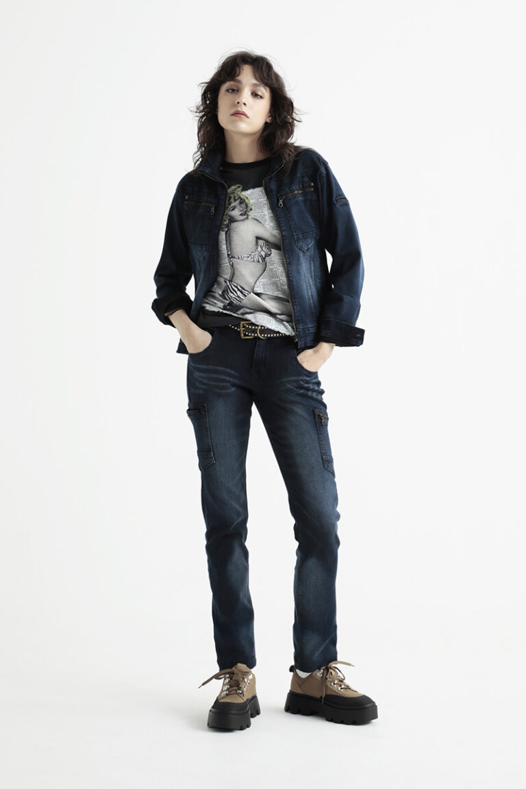 ニットデニムのような伸縮性を持った生地で作られたパンツ。ドビー織りを採用することにより、光沢感と独特の風合いをもつスタイルと、肌触りが柔らかく快適な着心地を生み出しました。
