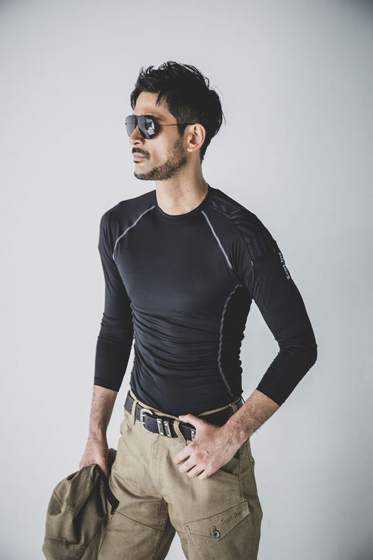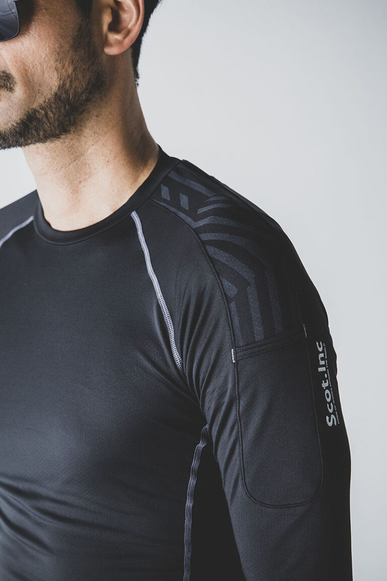 裏地全面にキシリトールを含有した特殊プリントが施されたの長袖コンプレッションシャツ。
